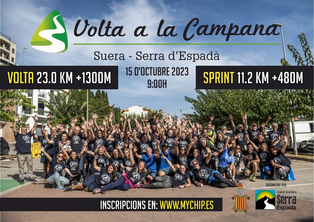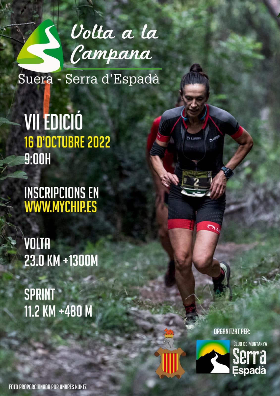 El pròxim diumenge 15 d’octubre a les 09:00 del matí celebrarem la huitena edició de la Volta a La Campana i la cinquena de la Volta Sprint. Com totes les edicions gaudirem d’una intensa jornada de muntanya recorrent el cor de la Serra d’Espadà. Enguany per motius alients a l’organització hi haurà un xicotet canvi en el traçat de Volta a La Campana (no afectarà la Volta Sprint).