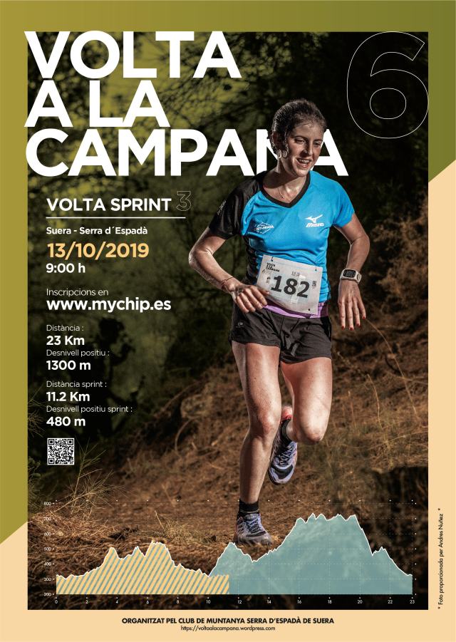 El pròxim diumenge 15 d’octubre a les 09:00 del matí celebrarem la huitena edició de la Volta a La Campana i la cinquena de la Volta Sprint. Com totes les edicions gaudirem d’una intensa jornada de muntanya recorrent el cor de la Serra d’Espadà. Enguany per motius alients a l’organització hi haurà un xicotet canvi en el traçat de Volta a La Campana (no afectarà la Volta Sprint).